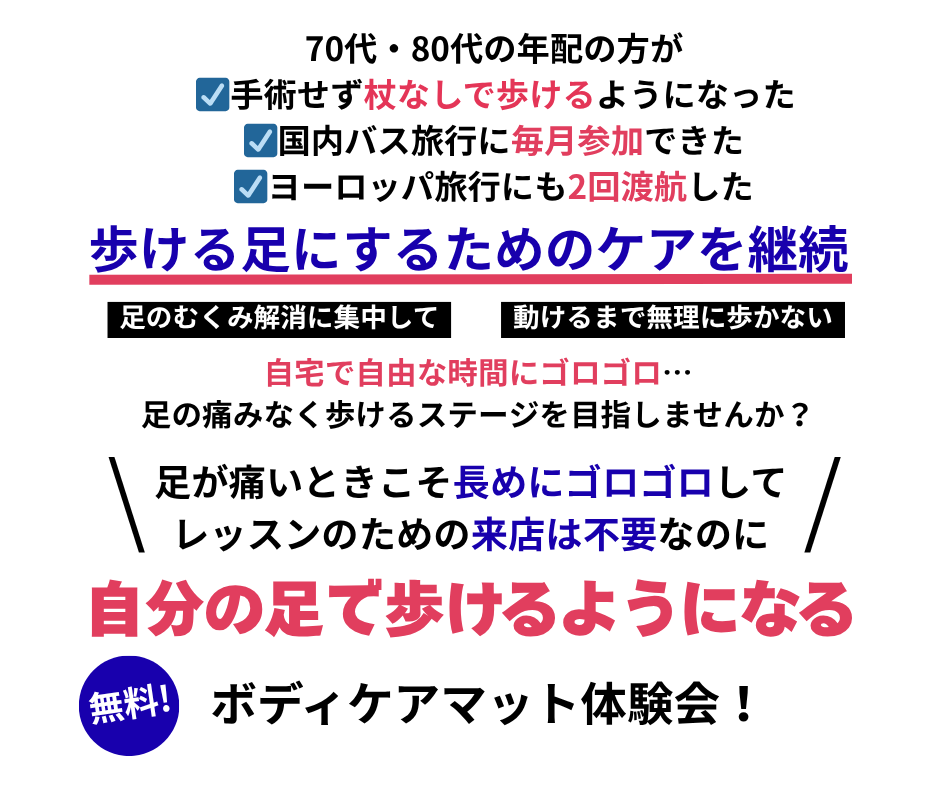 杖をついて歩いていた方が、杖なしで歩けるようになる「ボディケアマット」無料体験会とは?