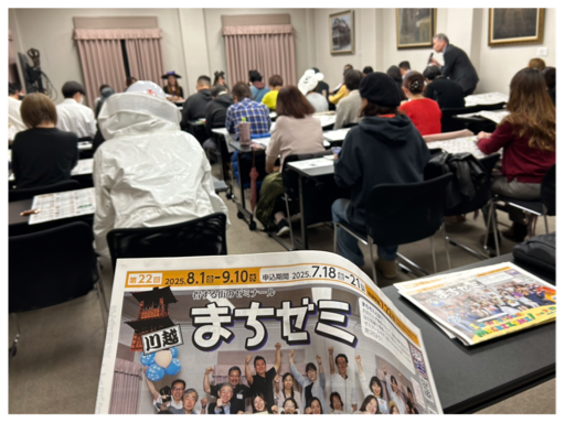 2017年夏に行われた第7回川越まちゼミに初参加して、2018年春から2021年春まで約3年世話人(ボランティア)に所属して、2025年夏に行われた第22回川越まちゼミ(今ここ)まで、一度も休まず参加してきました。とくに、2021年以降はコラボ講座のみという。笑