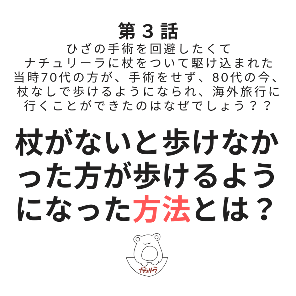 第3話「杖がないと歩けなかった方が歩けるようになった方法とは?」