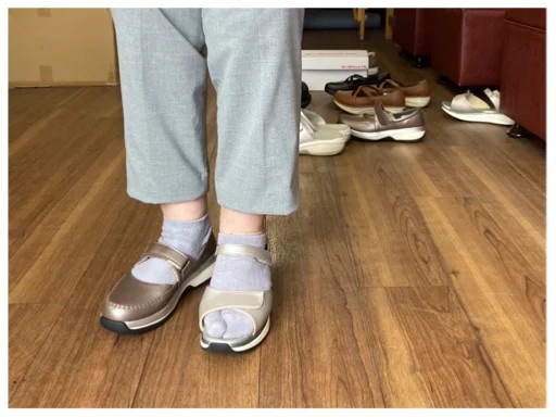 クツをかえて、インソールを入れて、足まくらなどで家でも足のケアをして、杖がなくても歩けるまでになられたわけです。